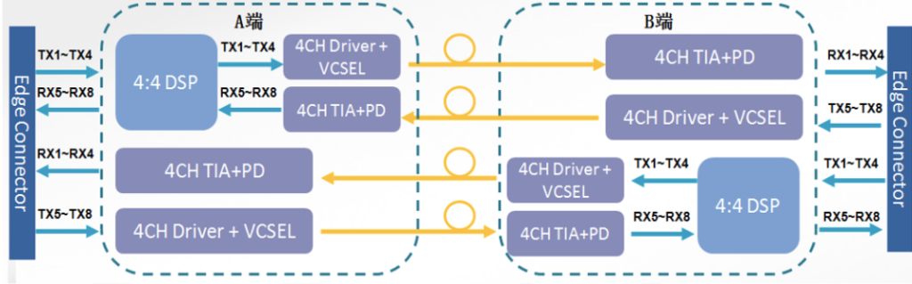 (1)Architecture Characteristics : No DSP inside the module . Signal processing fully shifted to the host SerDes